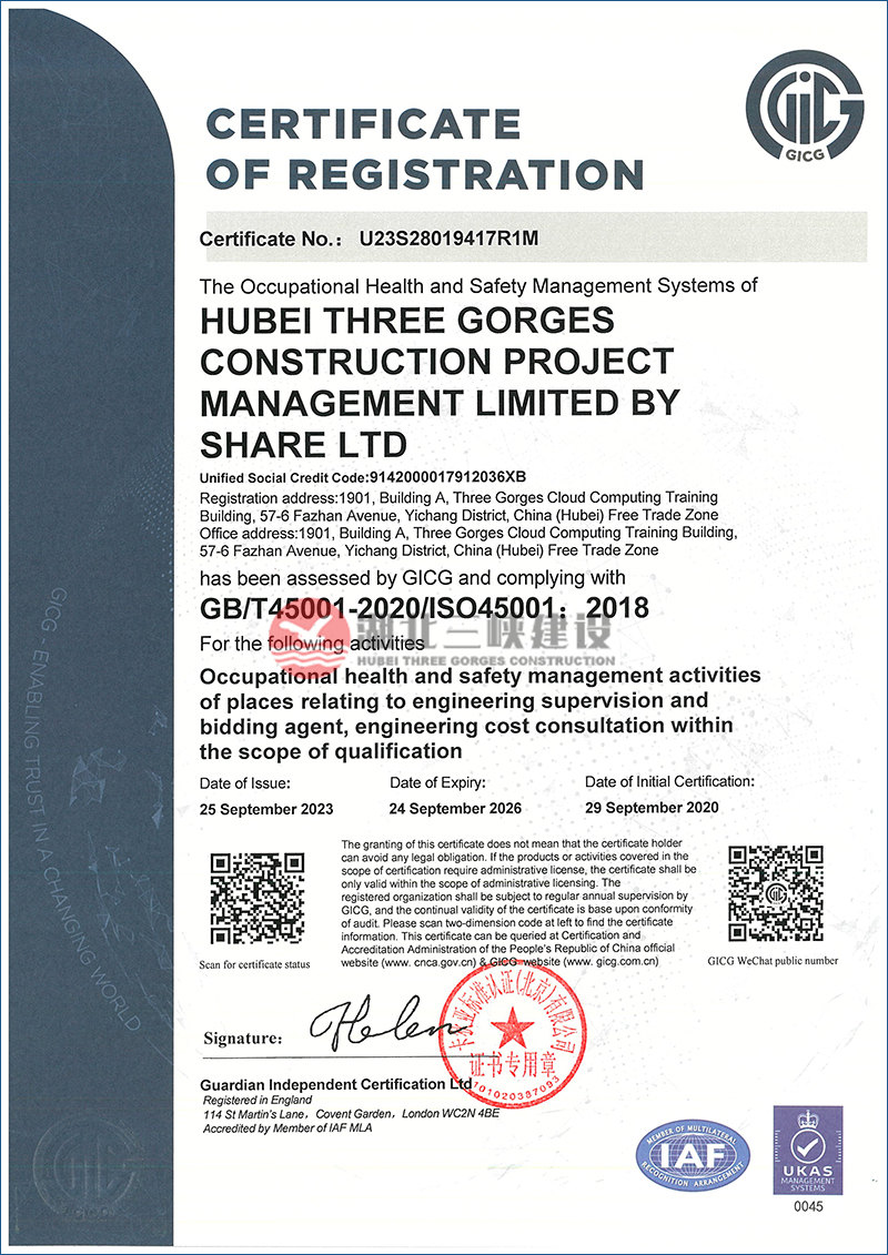 职业健康安全管理体系证书