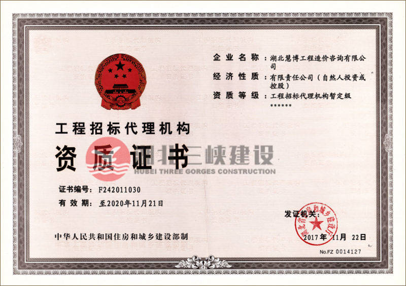 工程招标代理机构资质证书