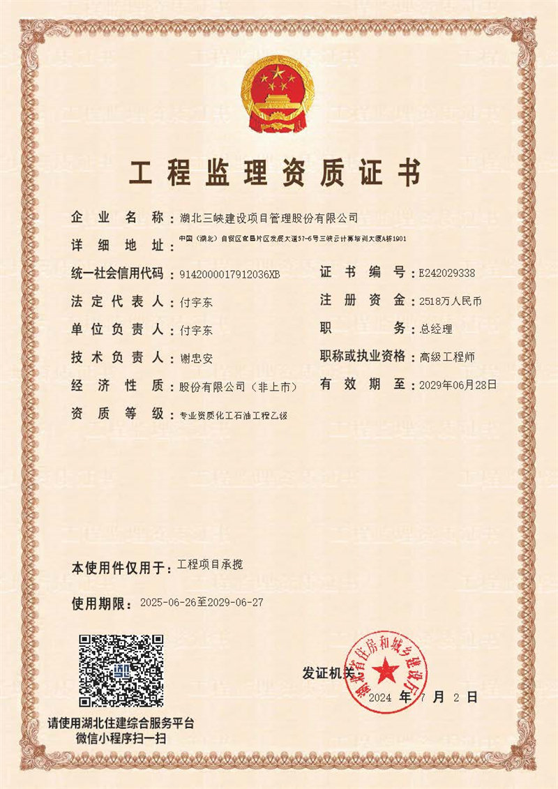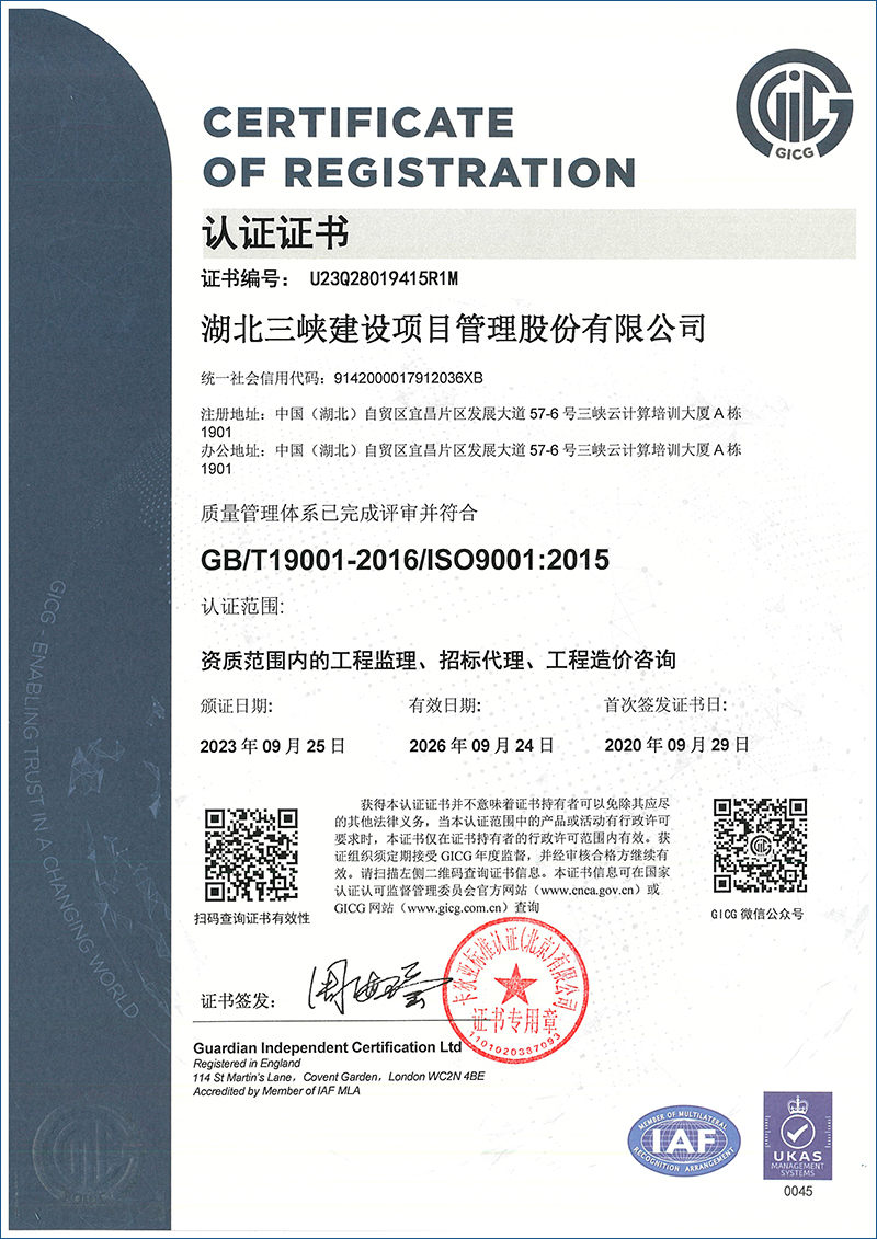 开云·体育-开云(中国) 立足湖北宜昌,业务范围遍及新疆、云南、福建、广东等省市,为投资人提供了诚信、科学、公正的项目管理咨询服务。公司注重以人为本,汇聚了专业、敬业、廉洁的人才队伍,拥有全国注册监理工程师120余人、一级造价师20余人、一级建造师30余人、咨询工程师(投资)10余人;公司致力以标准为证,公司研发的信息管理系统获国家版权局计算机软件著作权证;公司追求以价值为魂,铸就了全过程控制、全要素服务的工作作风,所承担的项目获国家级建基,形成了履责行为规范和风险管理机制,质量管理、环境管理、职业健康安全管理获ISO9001、ISO14001、 ISO 45001管理体系认设工程质量安全奖7项、省级建设工程质量安全奖100余项,市级建设工程质量安全奖300余项,合同履约率100%,项目优良率42%。